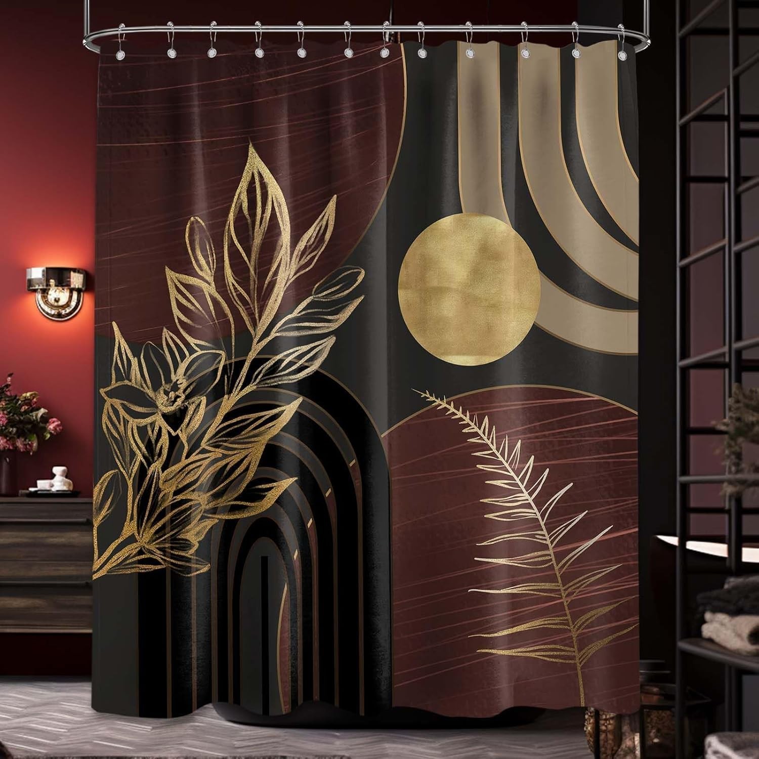 Sonbraux Brown Shower Curtains for Bathroom Dark Brown and Black Boho Gold Mid
