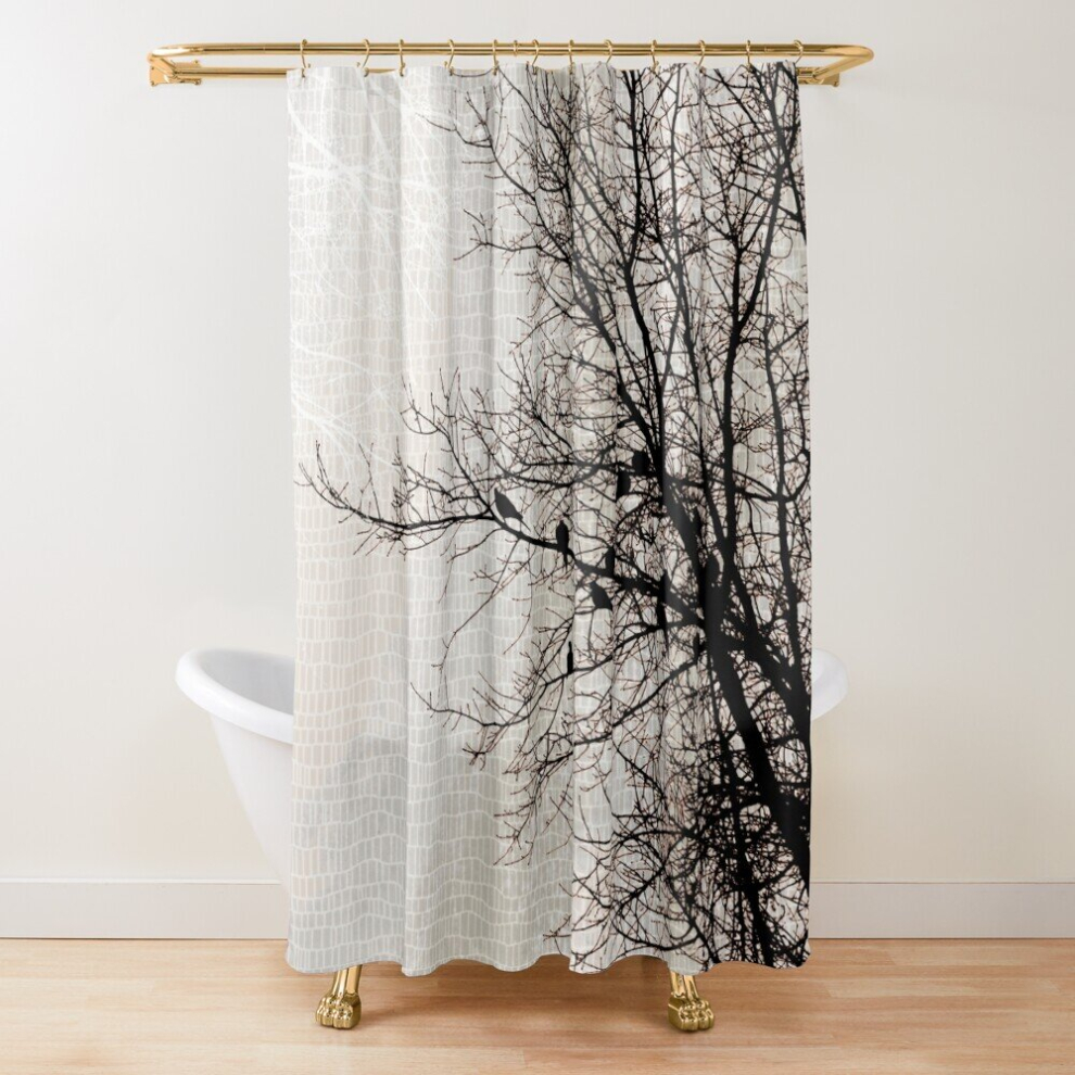 Shower Curtains Doves in Tree Branches Modern Nature Dark Brown Taupe for Bathroom Decor 72x72 inches
