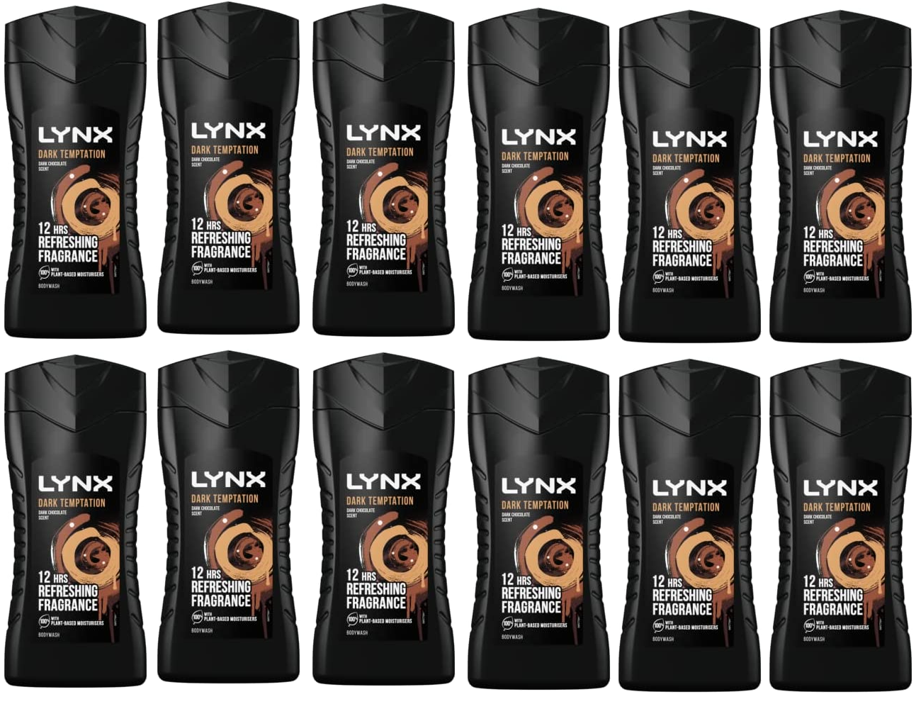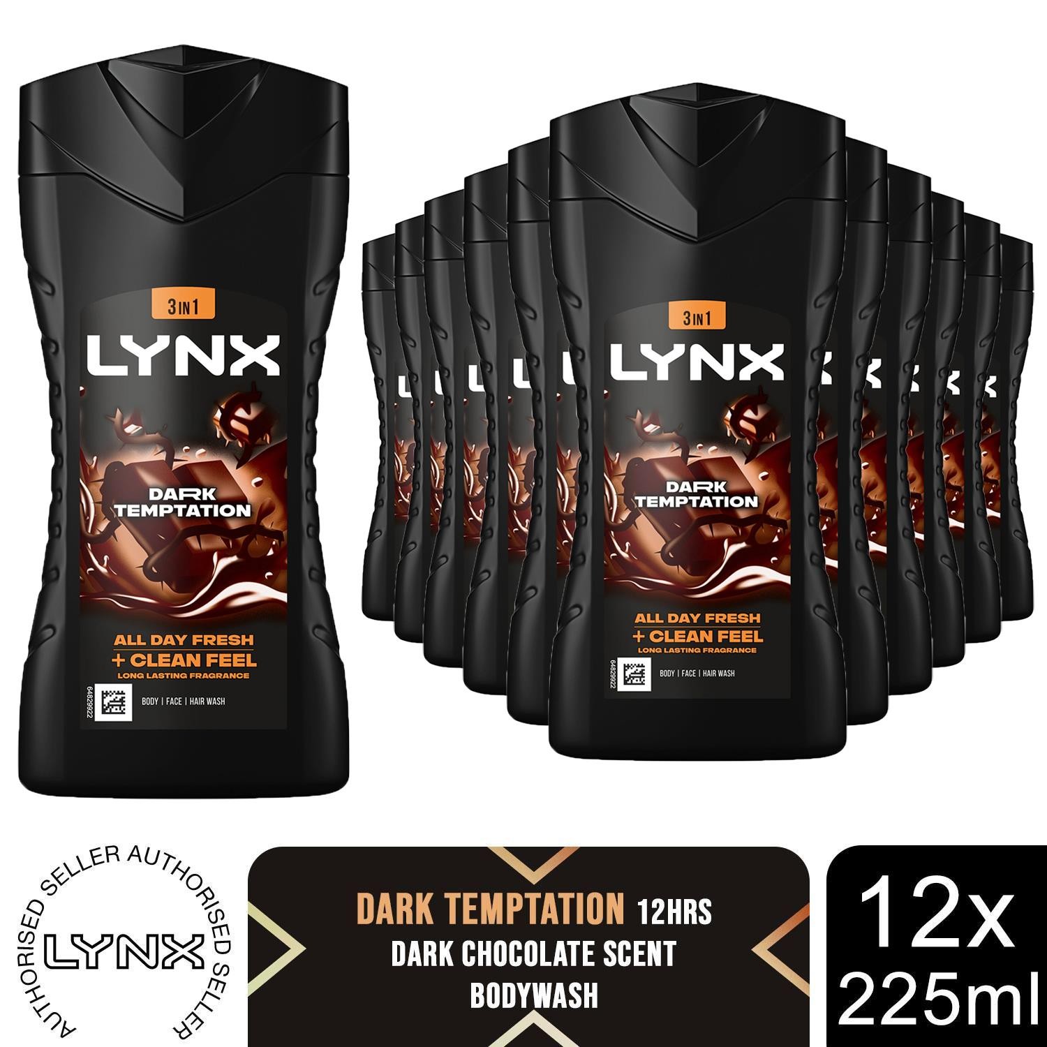 Lynx Dark Temptation 12-H Refreshing Fragrance Shower Gel Body Wash, 12x225ml