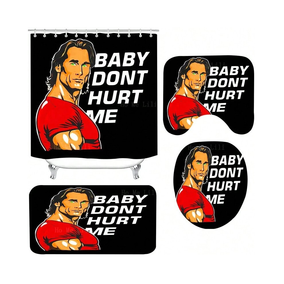 (1, Curtain Mat 4Sets) Dark Side Temptation Princess And Knight Baby Don'T Hurt Me Meme Cartoon Shower Curtains And Floor Mats Four-Piece Set