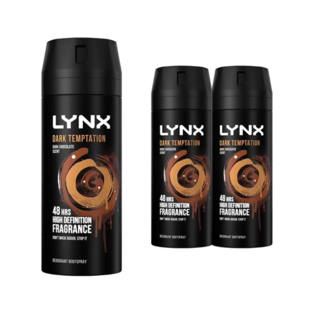 3 x 150ml Lynx DARK TEMPTATION Deodorant Spray Free 48h Tracked Delivery