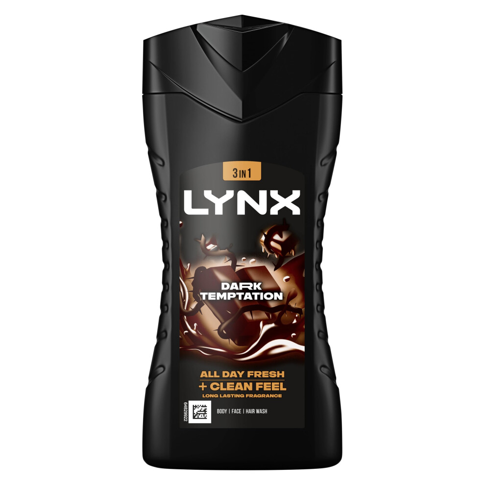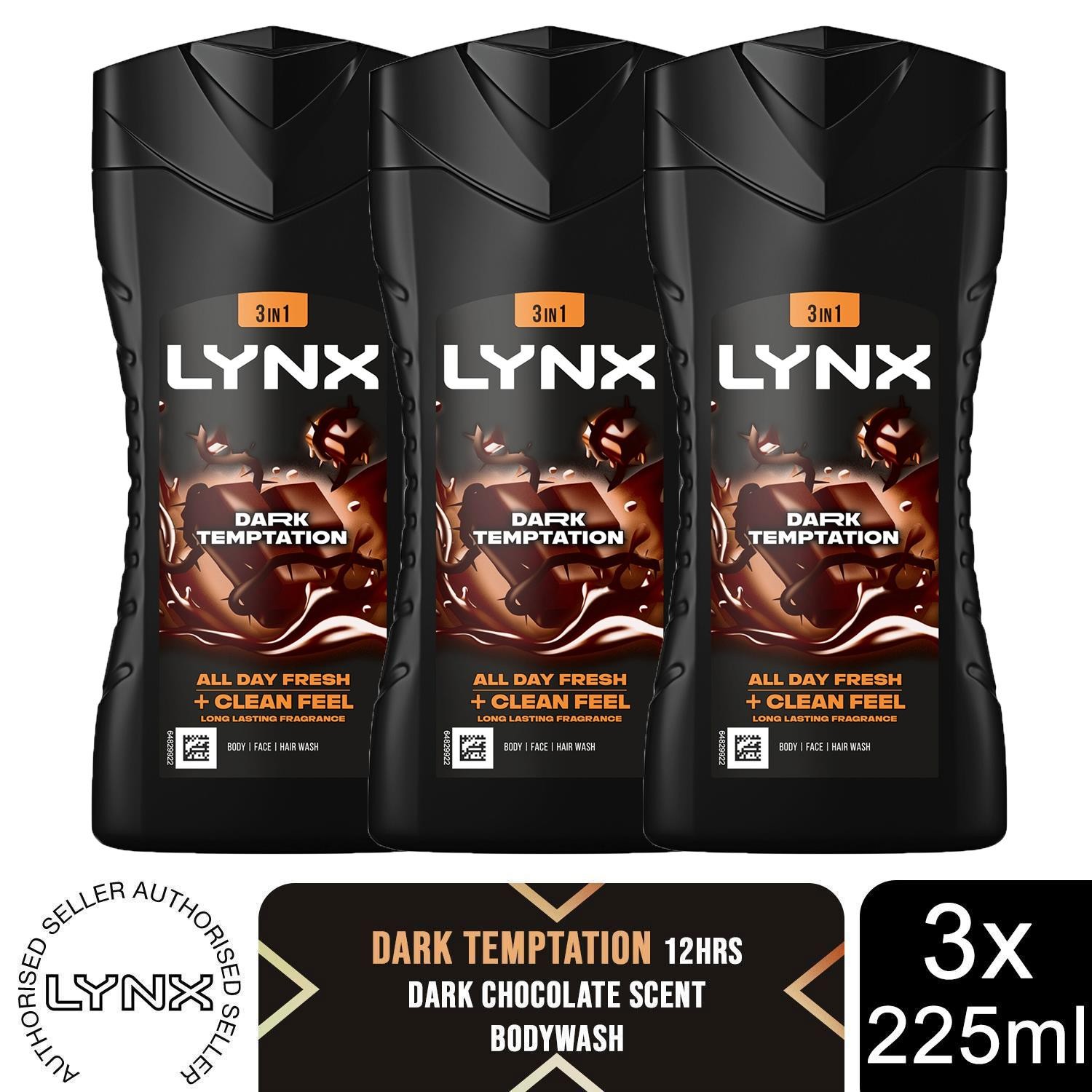 Lynx Dark Temptation 3-in-1 Body Wash Body Cleanser shower gel with an intense scent of rich chocolate for an all day fresh & clean feel 6x 225 ml