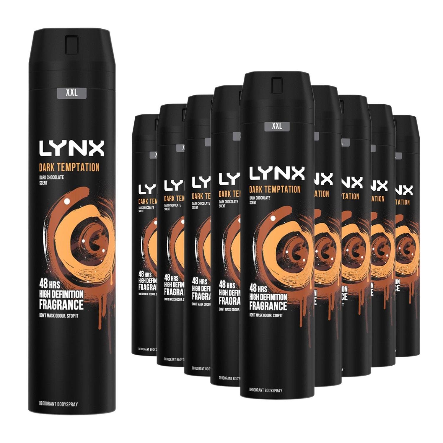 Lynx Men Dark Temptation Deodorant Body Spray for 48 hours of odour-busting, high definition fragrance with a smooth dark chocolate scent 250 ml