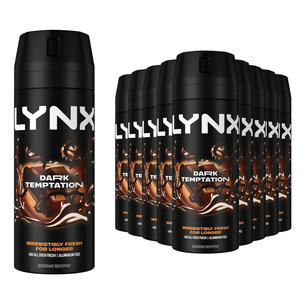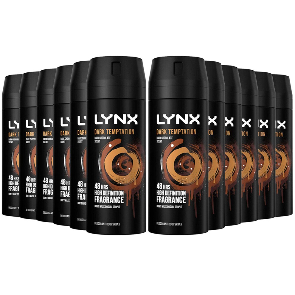 12 Pack of 150ml Lynx Dark Temptation Body Spray Deodorant with Scent of Chocolate