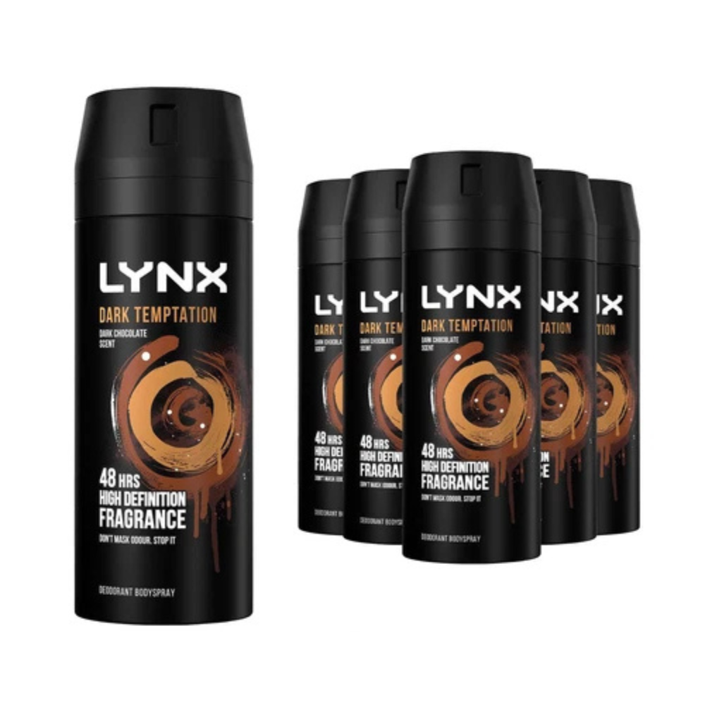 6 x 150ml Lynx DARK TEMPTATION Deodorant Spray Free 48h Tracked Delivery