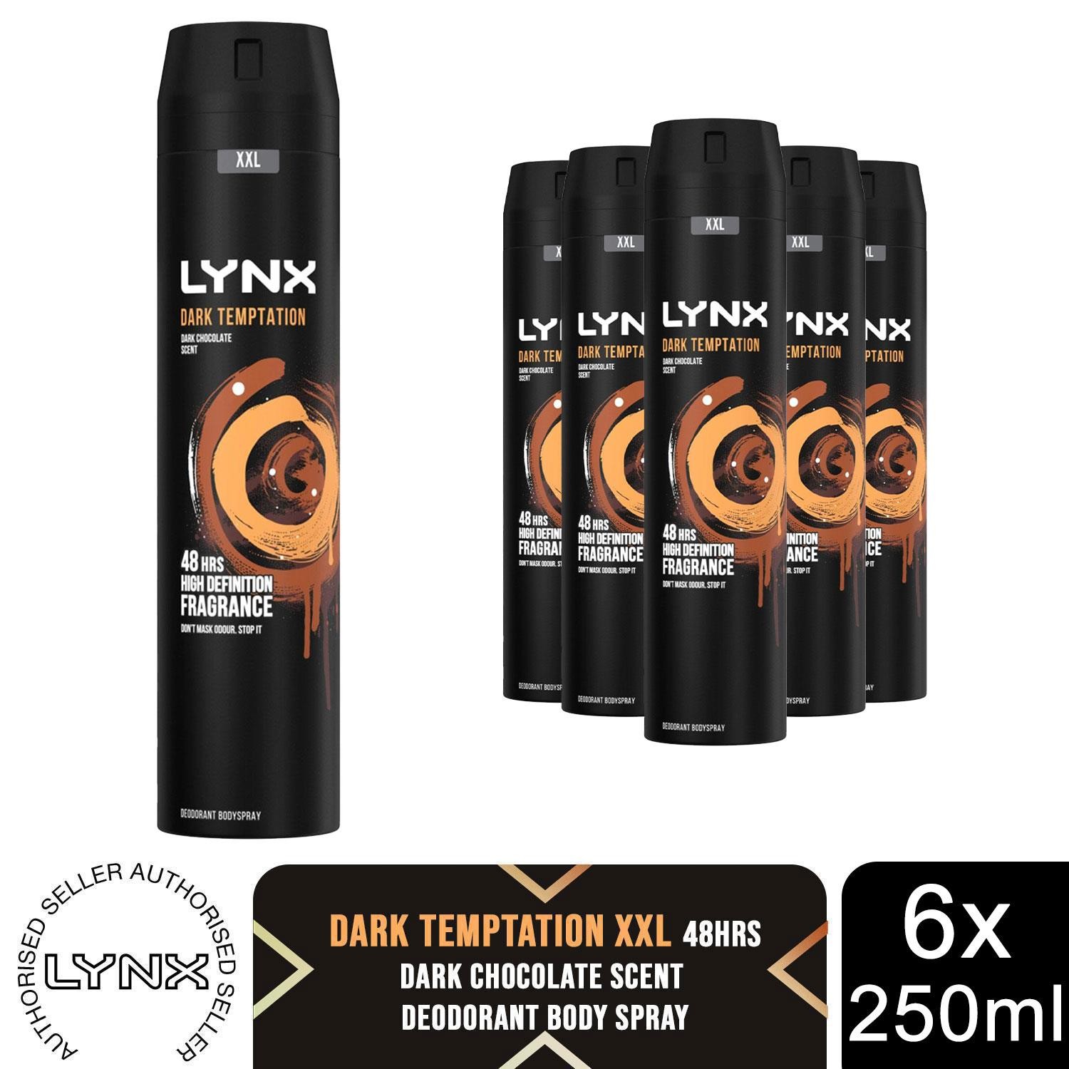 Lynx Mens XXL Dark Temptation 48-Hour High Definition Body Spray Deodorant, 6x250ml - Size 250 ml