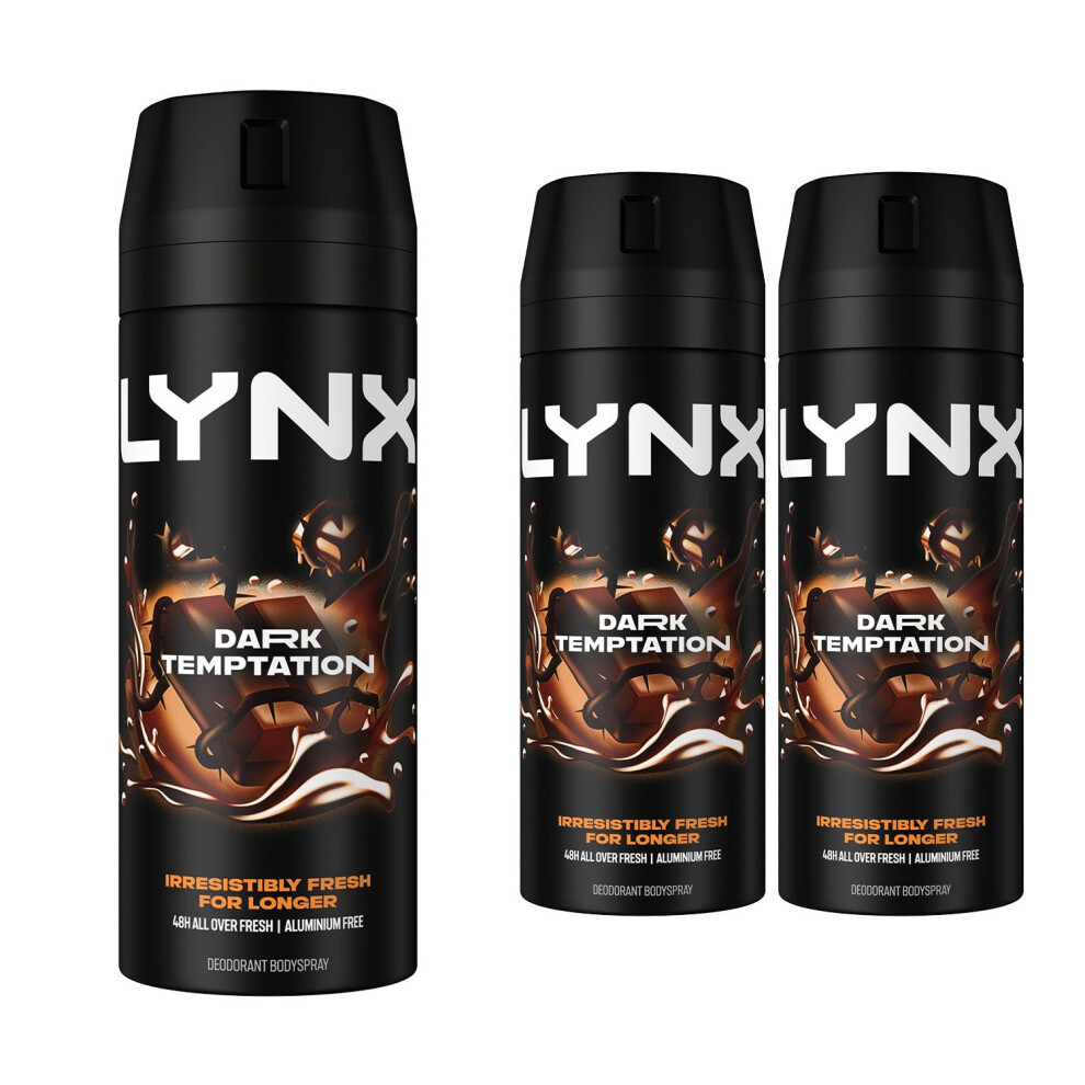 Lynx Mens Body Spray Dark Temptation 48-H High Definition Fragrance Deo, 3x150ml - Size 150 ml