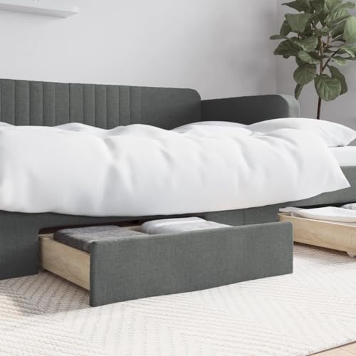 Teenpull Bed Frame, Dark Grey, 90 x 190 cm, Fabric, Wood Material, Minimalist Frame with Support for Your Bedroom Home