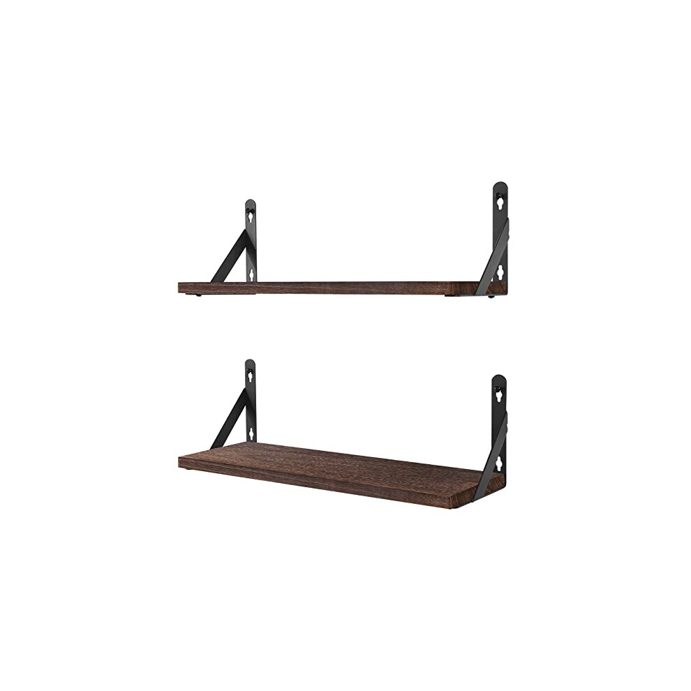 AGM Wall Mounted Shelves Set of 2, Rustic Dark Wood Wall Floating Shelves for Bedroom, Living Room, Kitchen, Laundry Room Storage & Decoration-Dark