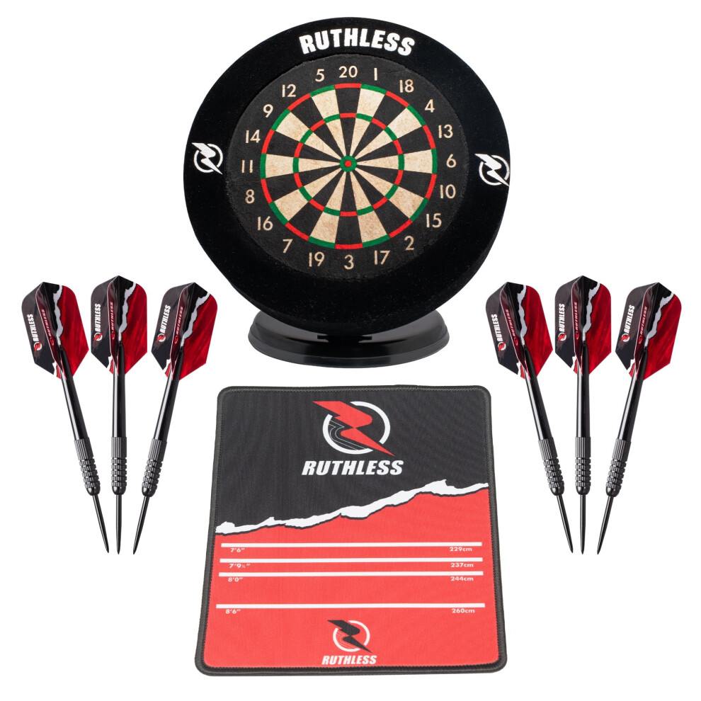 Ruthless Mini Dart Board Set with Surround, Mouse Mat and Extra Darts| Miniature Desk Top Darts Home Centre and Dart Board Set for Home and Office