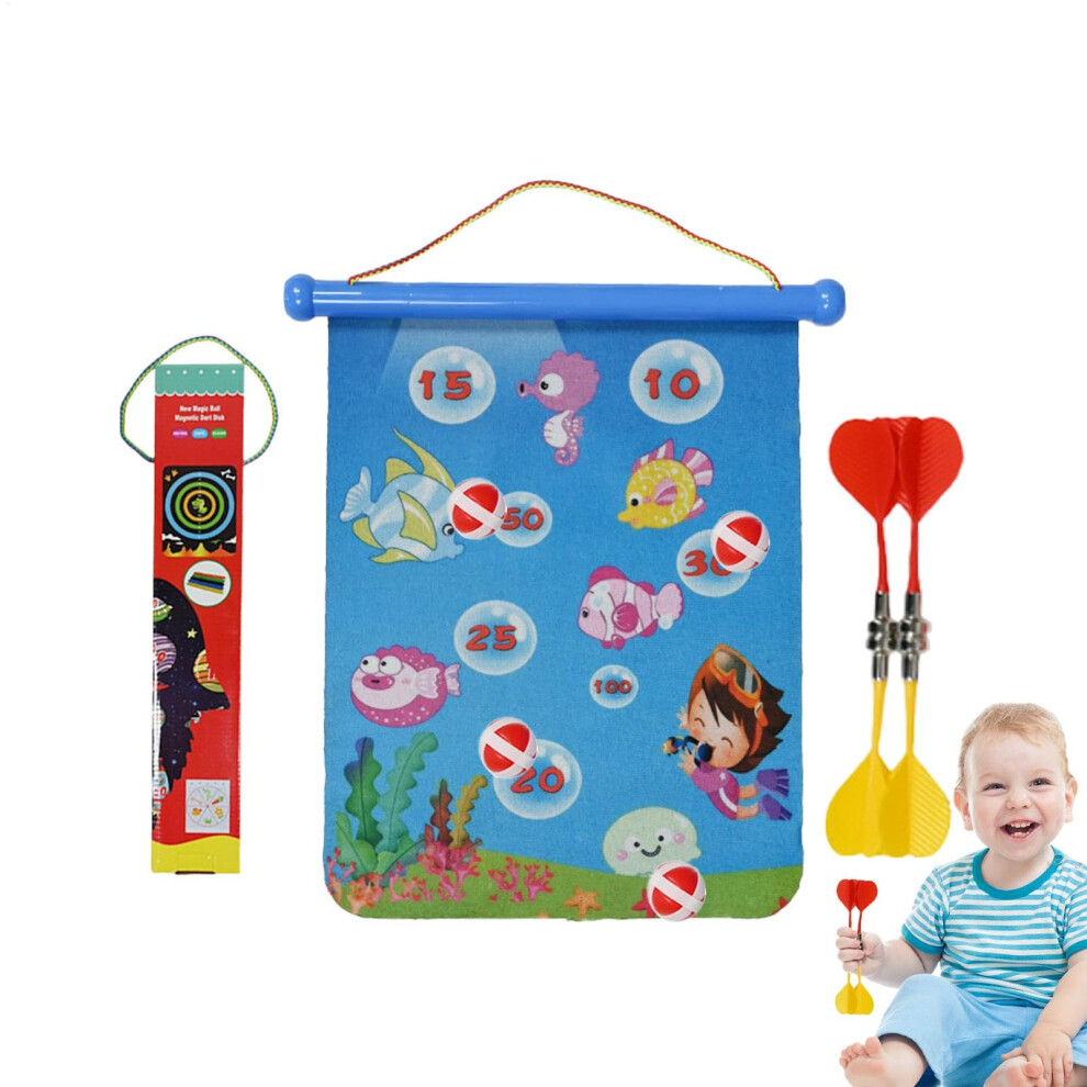 Kids Magnetic Dart Board Set with Secure Magnetic Hold, RollUp Design, Safe Indoor Outdoor Game for Children