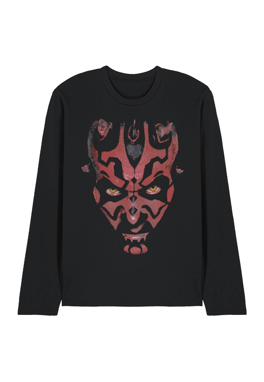 Star Wars Darth Maul Large Face Long Sleeve T-Shirt, Black | Size: Medium