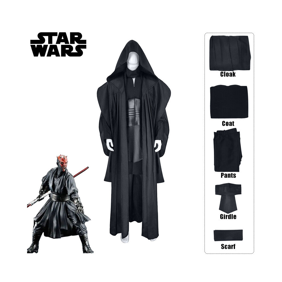 Hermanlory Men's Darth Maul Cosplay costume Full Suit Halloween Carnival Black Tunic Uniform With Cloak (M)
