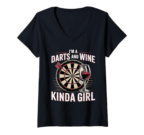 Womens Funny Darts Accessories Women Darts And Wine V-Neck T-Shirt