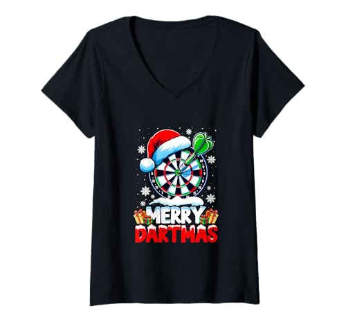 Womens Merry Dartmas Christmas Santa Darts Equipment Player Team V-Neck T-Shirt