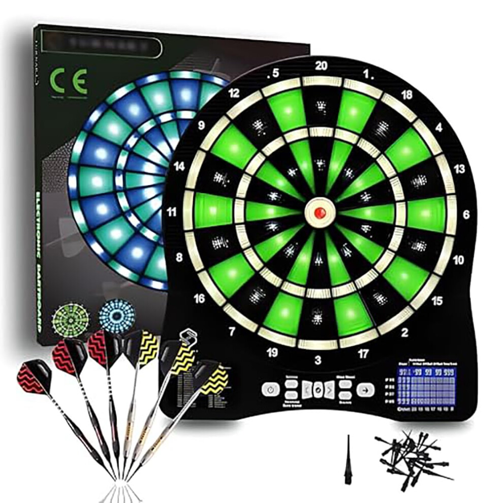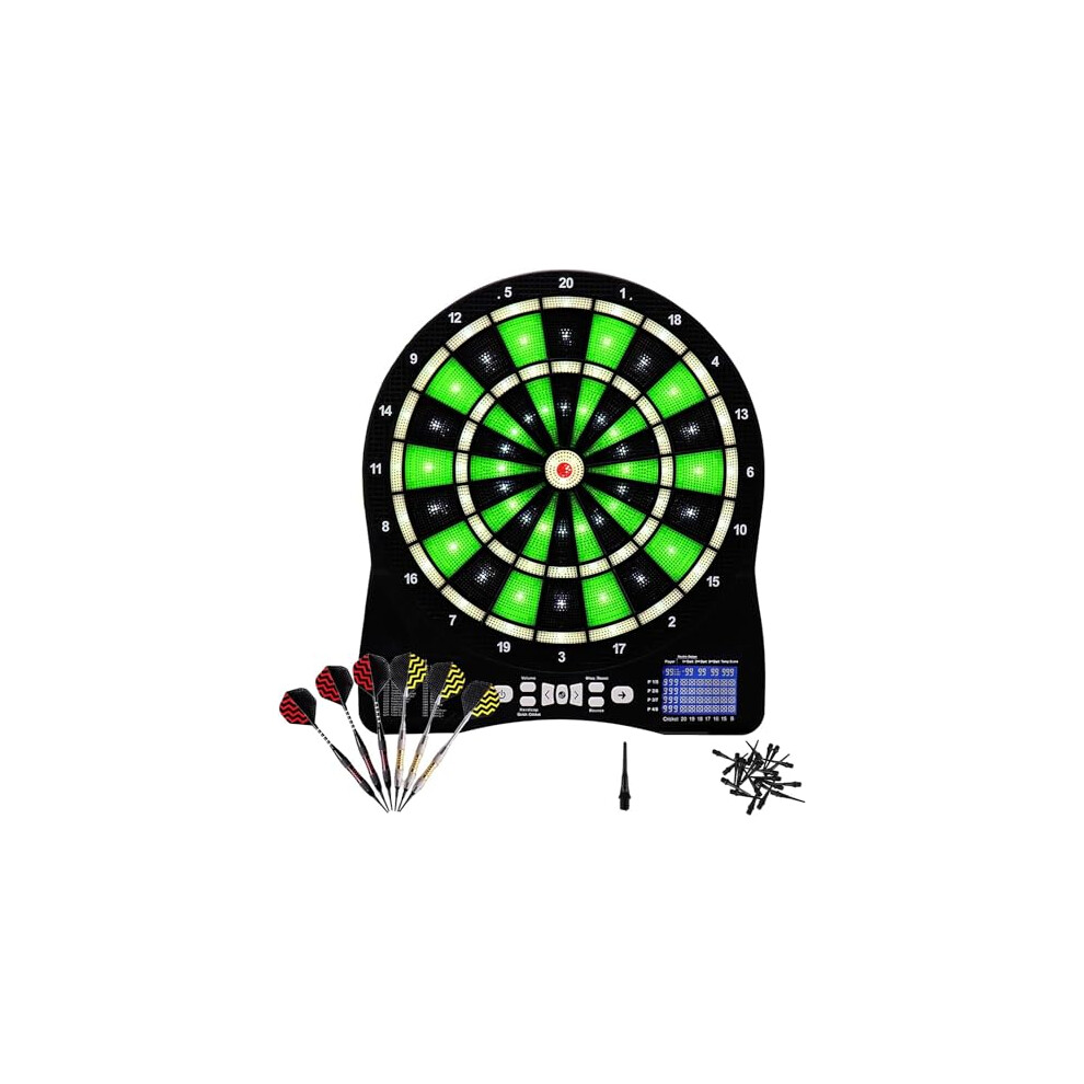 Illuminated 13" Electronic Dart Board Set, 48 Games, 6 Soft Tip Darts, Automatic Scoring, Compact Green Board