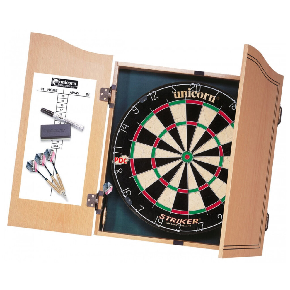 Unicorn Striker Home Dart Center with Striker Bristle Dartboard, 2 Sets of Darts, PDC Endorsed, Wooden Cabinet, Whiteboard Scoring, Free Marker Pen