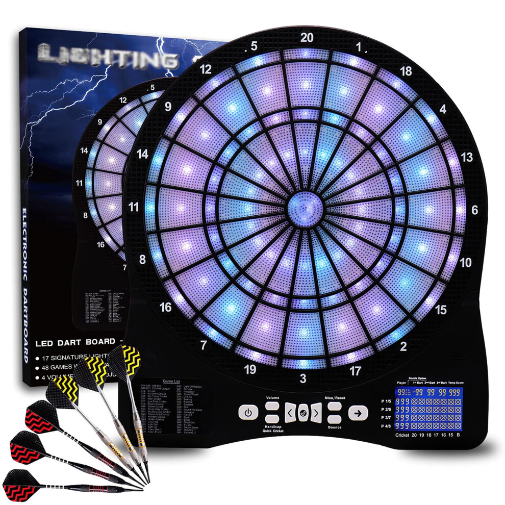 Electronic Dartboard LED Light Automatic Scoring LCD Score Display 48 Games 6 Soft Tip Darts 50 Replacement Tips Blue