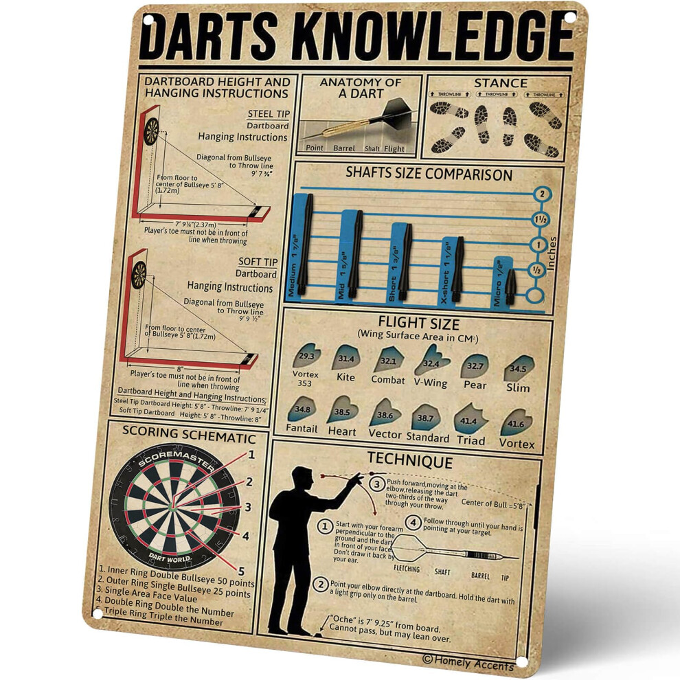 Darts Knowledge Art Poster Vintage Metal Tin Sign 16x12 Inches Dartboard Instructions and Scoring Guide Dart Room Wall Decor