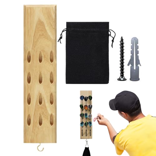 Wooden Dart Display Holder - Wall Mounted Stand Stylish Board Store | Dart Holder with Storage Bag and Screw for Display 12 Soft or Steel Darts Game Room Bar Home
