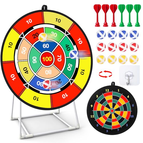 29 Inches Kids Dart Board Set, Large Double Sided Dart Board with 12 Sticky Balls, 6 Darts & Stand, Indoor Outdoor Party Games Toys Gifts for 3 4 5 6 7 8 9 10 11 12+ Year Old Boys Girls & Adults