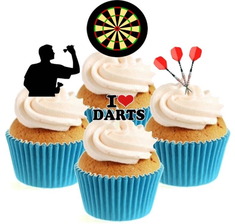 Novelty Darts Player Mix 12 Edible Stand Up wafer paper cake toppers dart board