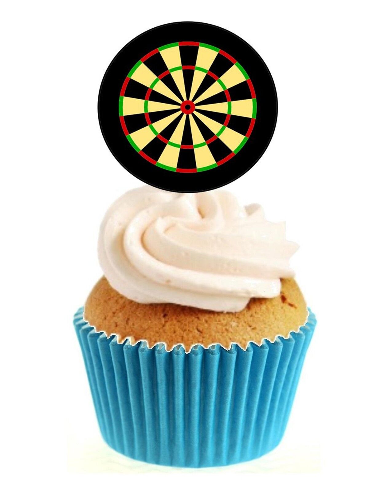 Novelty Dart Board 12 Edible Stand Up wafer paper cake toppers darts birthday
