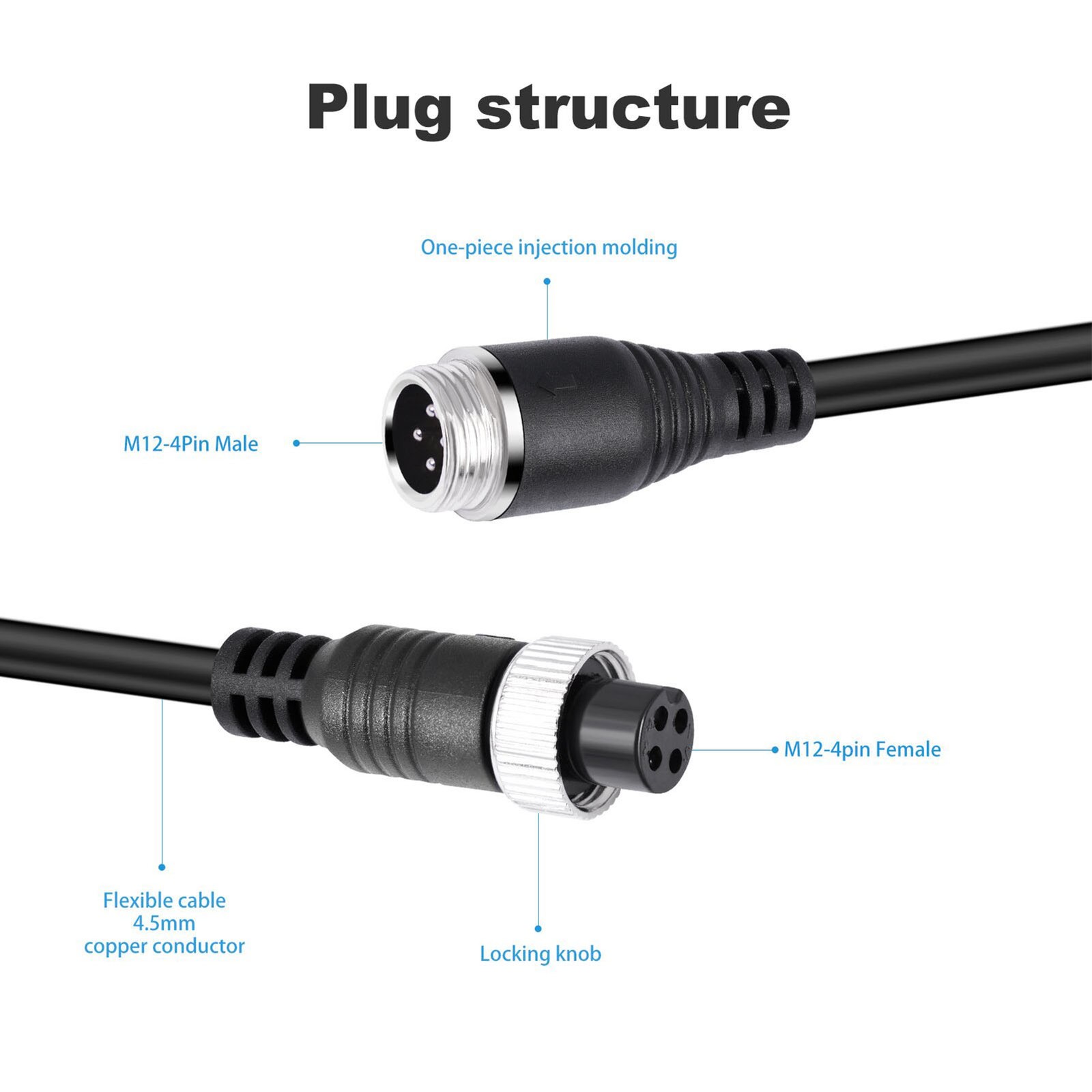 Backup Camera Extension Cable 4Pin Stable Signal Dash Cam Backup Camera