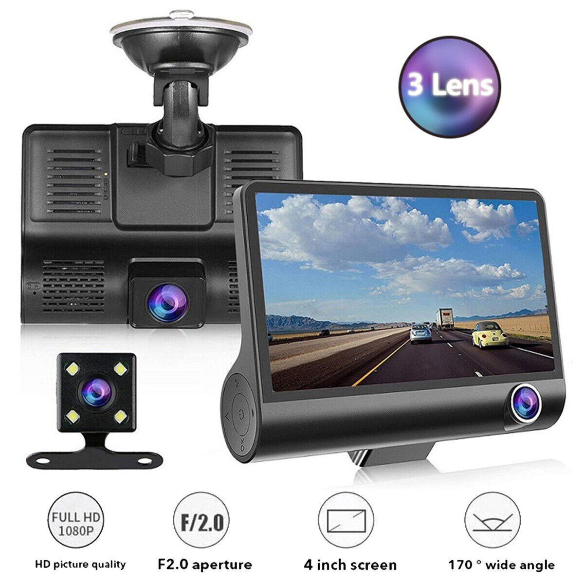 1080P 4" Dual Lens HD Car DVR Rearview Video Dash Cam Recorder Camera G-Sensor