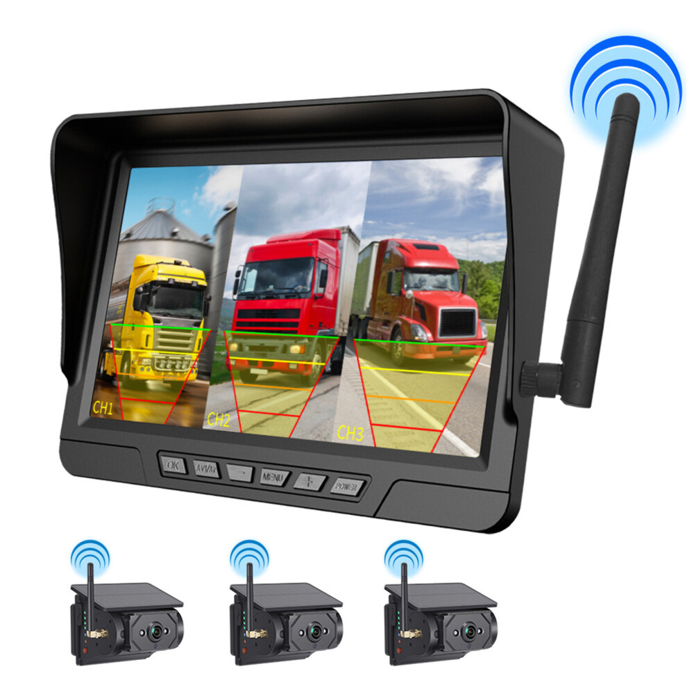 (7inch 3way) Dash Cam For Car Emergency Lock Wireless Monitoring Nights Vions Solar