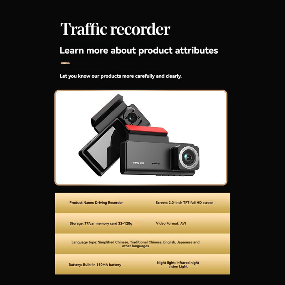 3.0In Dash Cam for Cars 1080P 2 Lens Front Camrea,B
