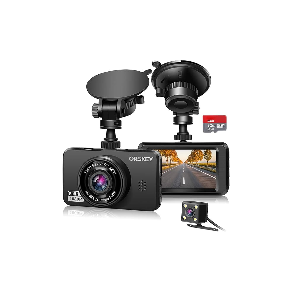 ORSKEY Dash Cam for Cars Front and Rear and SD Card Includ