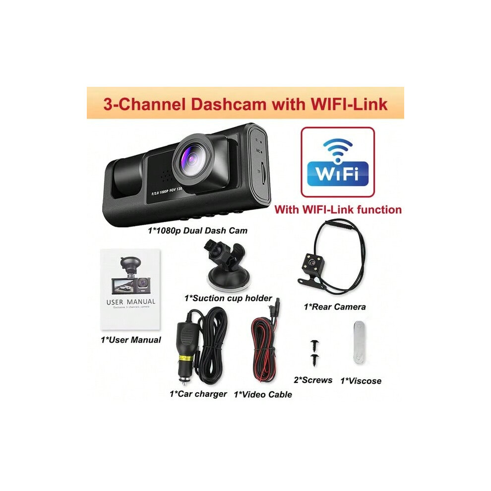 3 Channel Dash Cam for Cars Camera WIFI 1080P Video Recorder