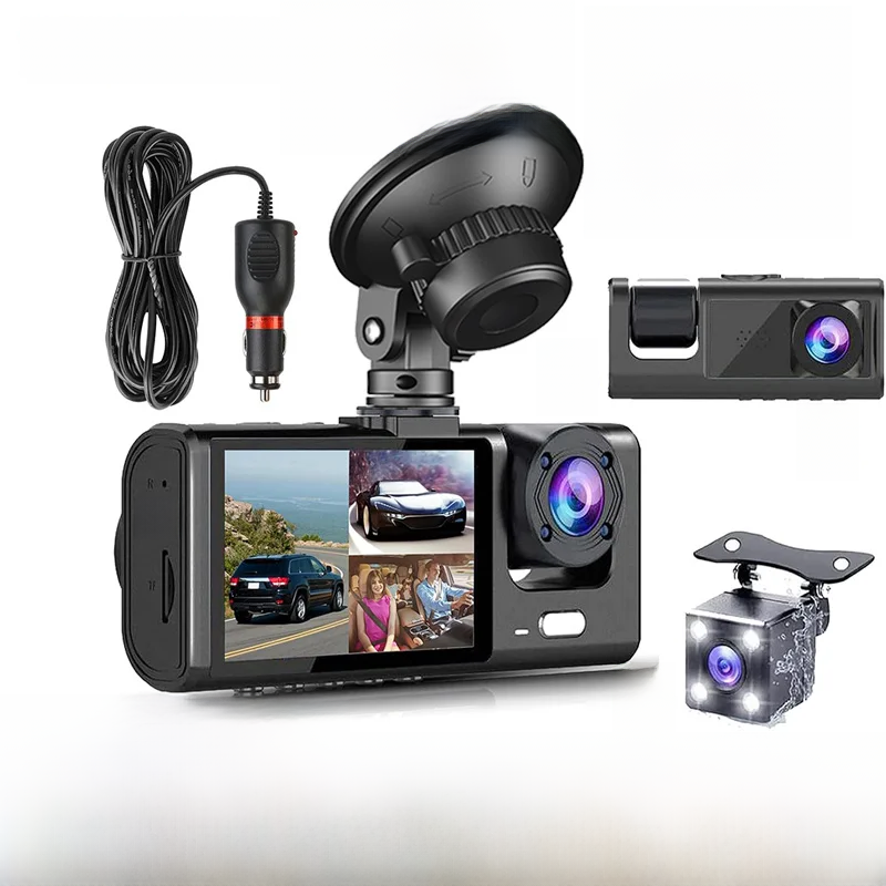 3 Channel Dash Cam for Car Front And Rear Camera 1080P Video Recorder Dashcam Black Box Car DVR Rear View Camera car accessory