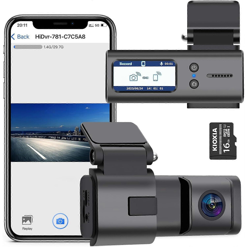 (A16W 2.5K Dash Cam Front Only with 128GB Card) Dash Cam WiFi, Car Camera Dash Cam W/ 128GB Card Dashcam 2.5K QHD 1440P Dash Cam Front, Dash Cameras W