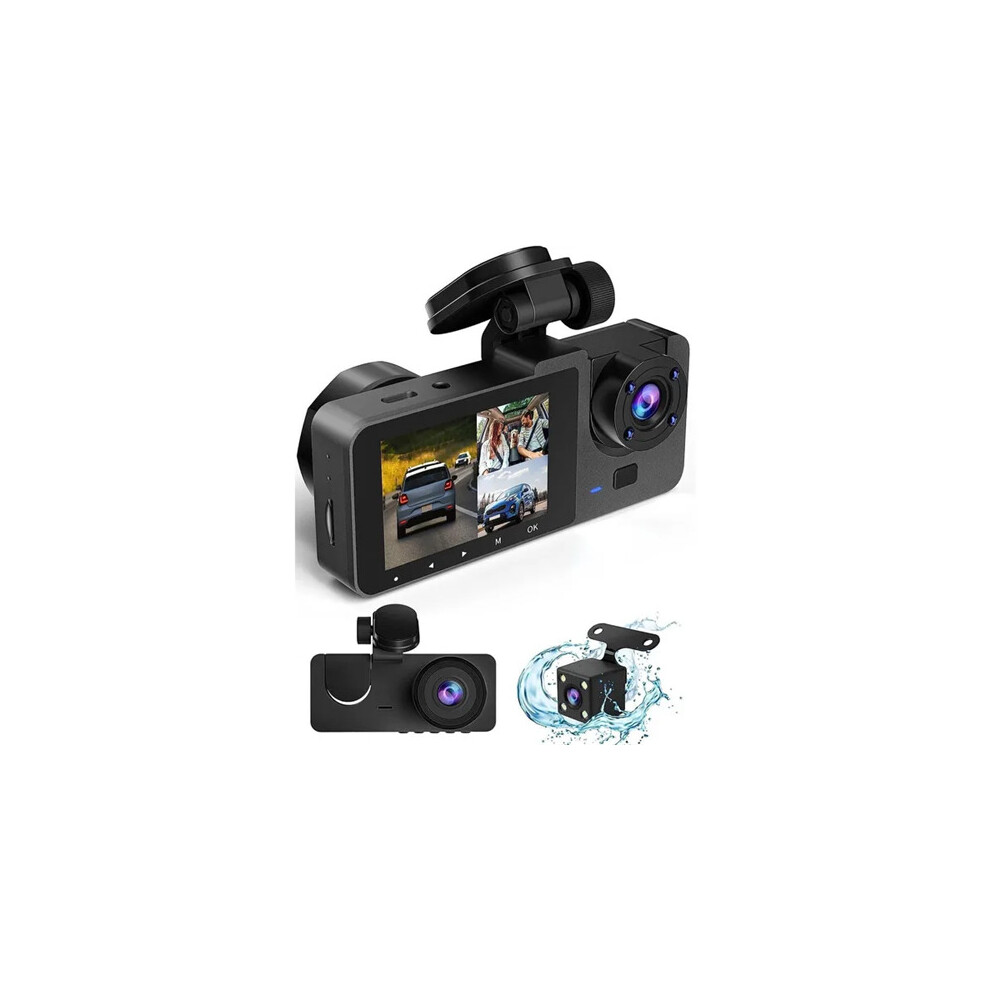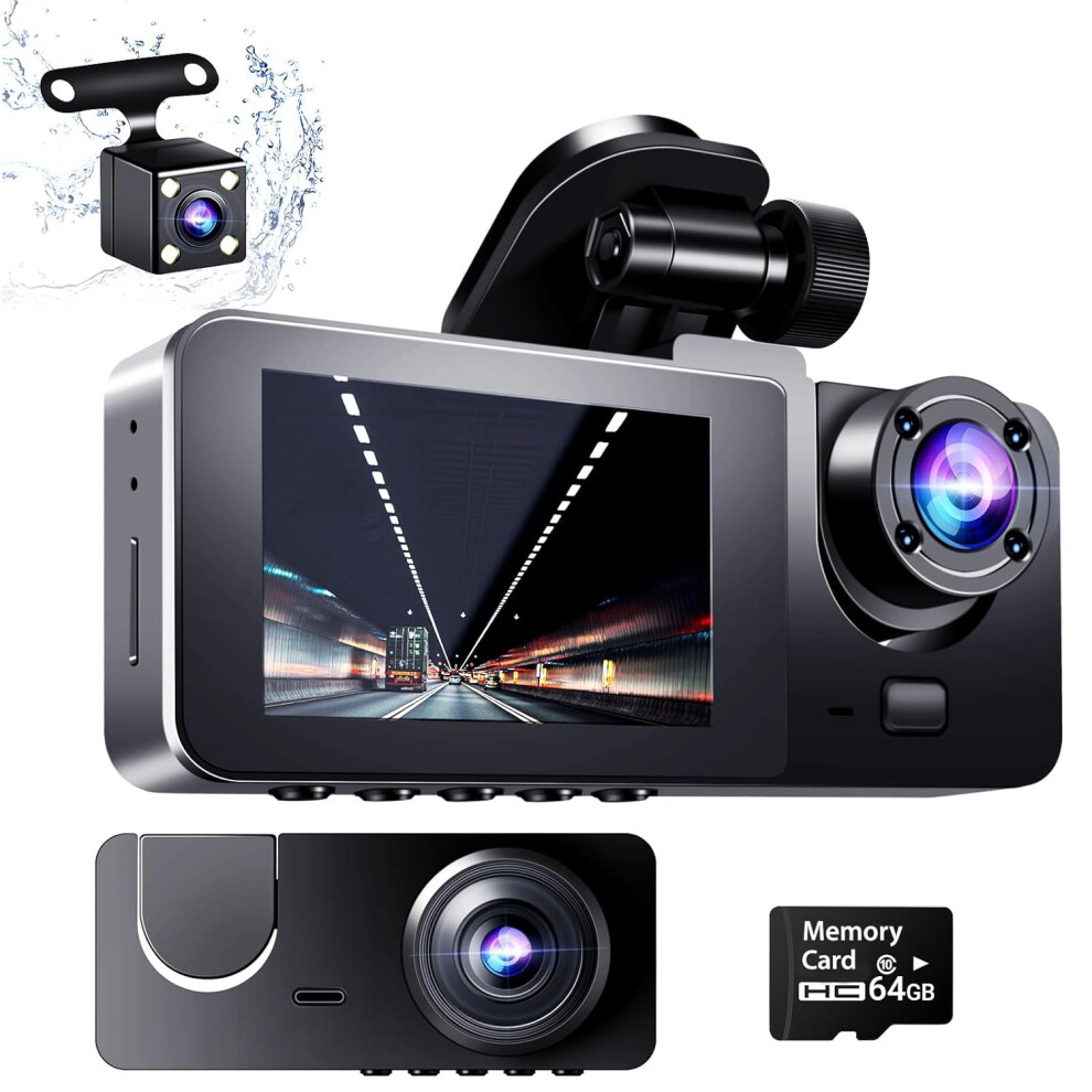 Dash Camera for Cars, 4K 170 Wide Angle 3 Channel Dash Cam with 64 GB SD Card, Front and Rear Cameras with Night Vision and Waterproof Function, 2.0'