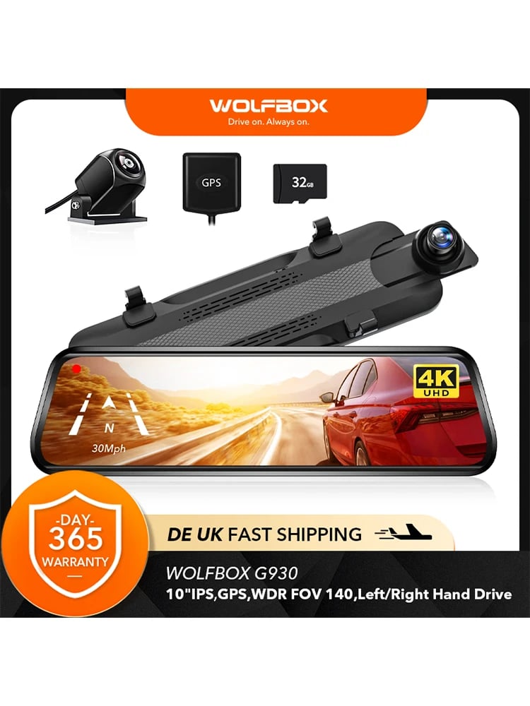 WOLFBOX G930 10 Inch Wifi Dash Camera 4K Car DVR FOV 140 Mirror Camera Dash Cam Car 24H Parking View Touch Screen Video Recorder