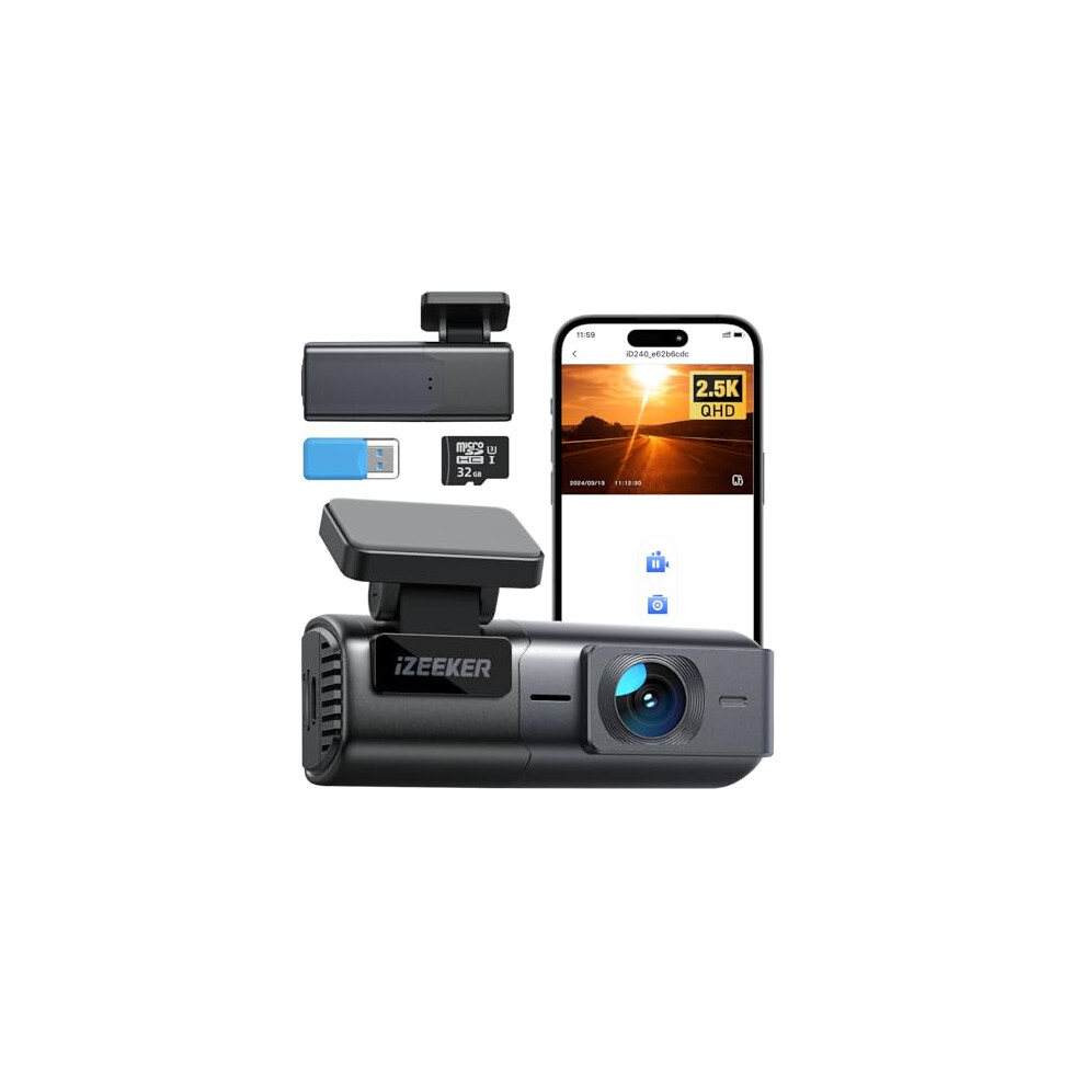 iZEEKER 2.5K Dash Cam WiFi Dash Camera for Cars, Mini Car Camera 1440P Front Dashcams with App, Free 32GB Card, Night Vision, WDR, G-Sensor, Loop