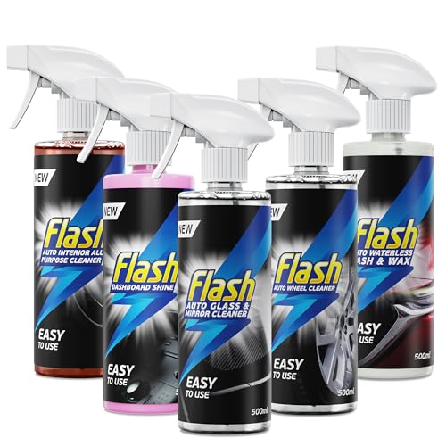 FLASH Total Clean Car Cleaning Kit 5x500ml, Complete Interior & Exterior Car Cleaning Products Bundle with Dashboard Shine, Wheel Cleaner, Waterless Wash & Wax, Glass & All Purpose Cleaner