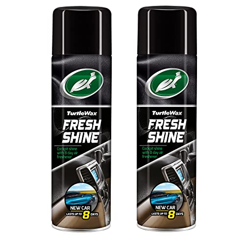 Turtle Wax Fresh Shine Interior Plastic & Dashboard Cleaner with Air Freshener New Car Scent 500ml x2 - Removes Dirt, Dust & Residue from Car Interior Plastic for a Glossy Shine & New Car Smell