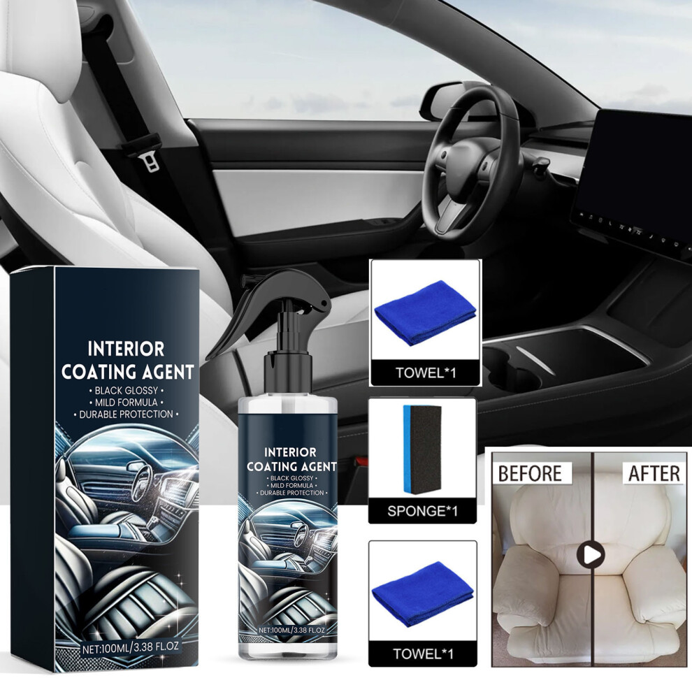(100ml+sponge+cloth) Car interior cleaner, dashboard seat leather multi-purpose refurbishment cleaning and maintenance agent