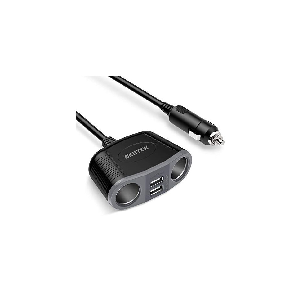 BESTEK Car Cigarette Lighter Adapter Socket Splitter 12V/24V with Dual USB Ports for Smart Phone, Samsung, GPS, Dashcam, Radar Detector and More