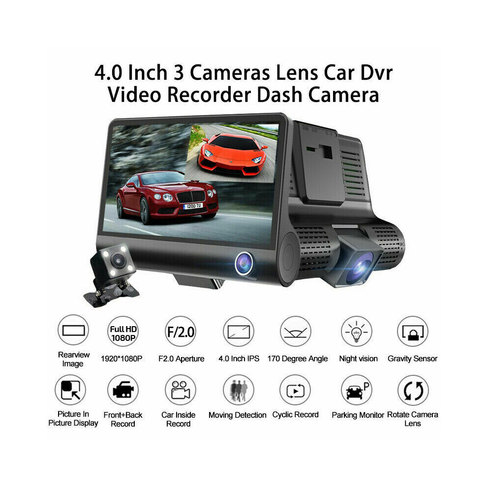 4" Car DVR 3 in 1 Dash Cam GPS 3 Lens Front and Rear Video Recorder Camera G-sensor