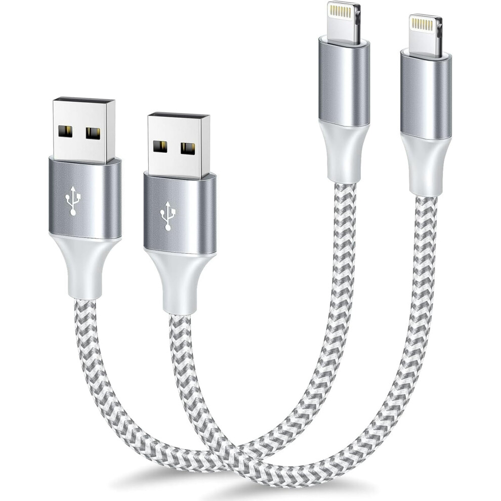 2 pcs mobile phone chargers 10 feet (3 meters) Apple Lightning nylon braided data cable, fast charging data cable-silver gray two-color braided 3m