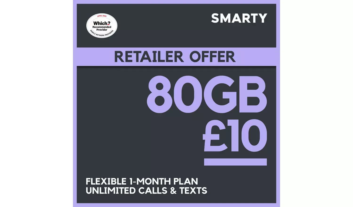OFFICIAL Smarty sim card, UK 80GB Data for £10 + Europe roaming Pay & Go 4G/5G