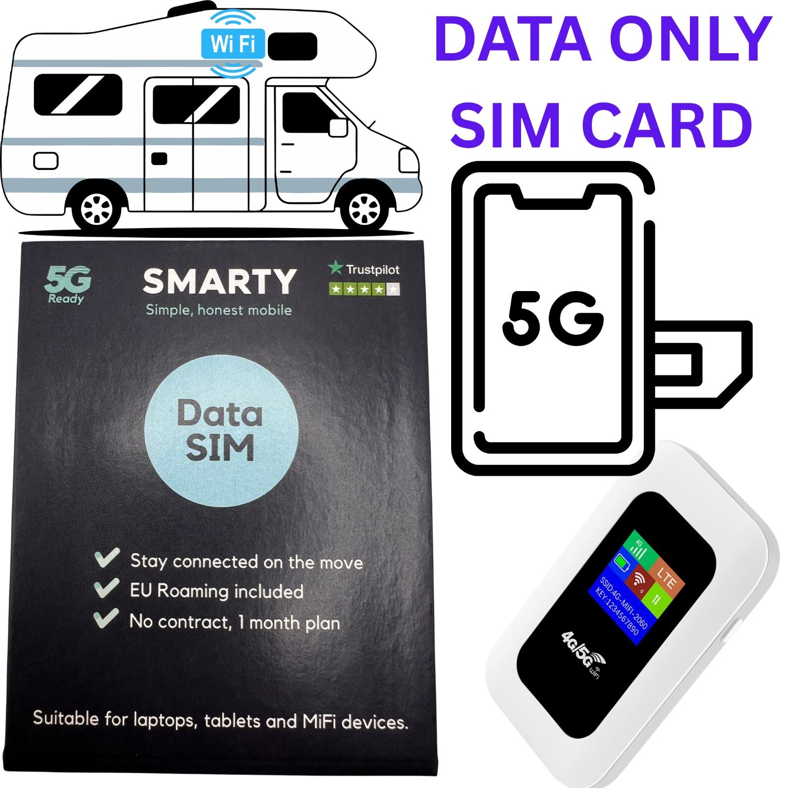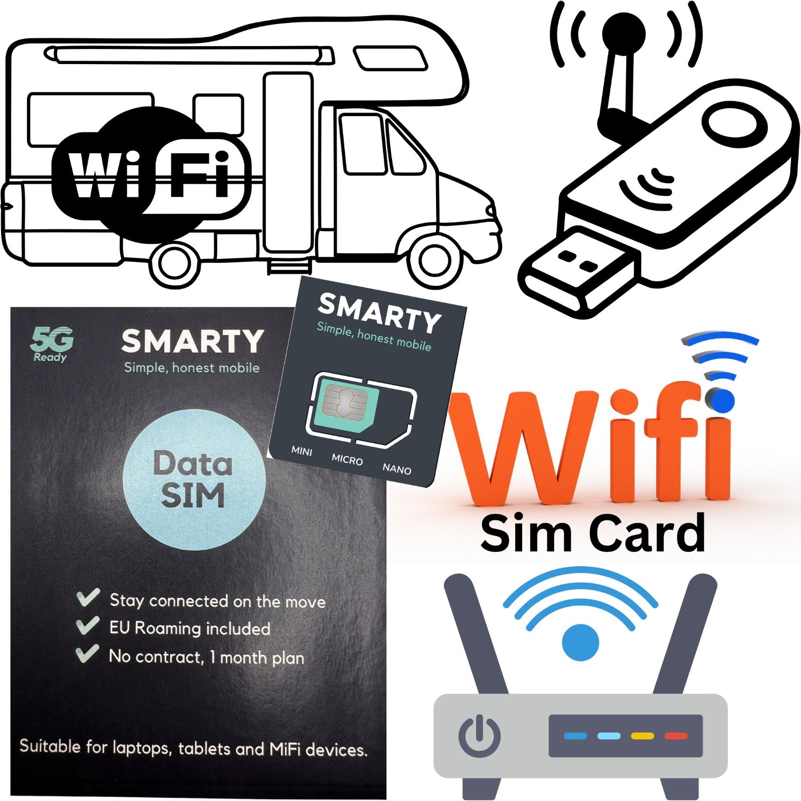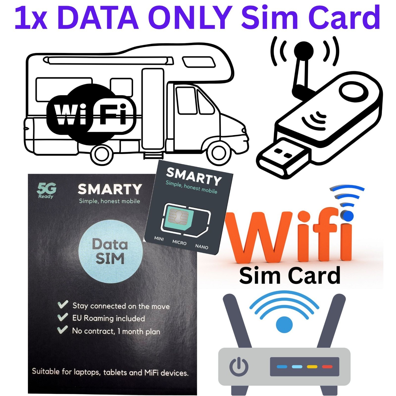 1 x New SMARTY DATA SIM CARD FOR WiFi Router-Dongle campervan MiFi Hotspot 4G 5G
