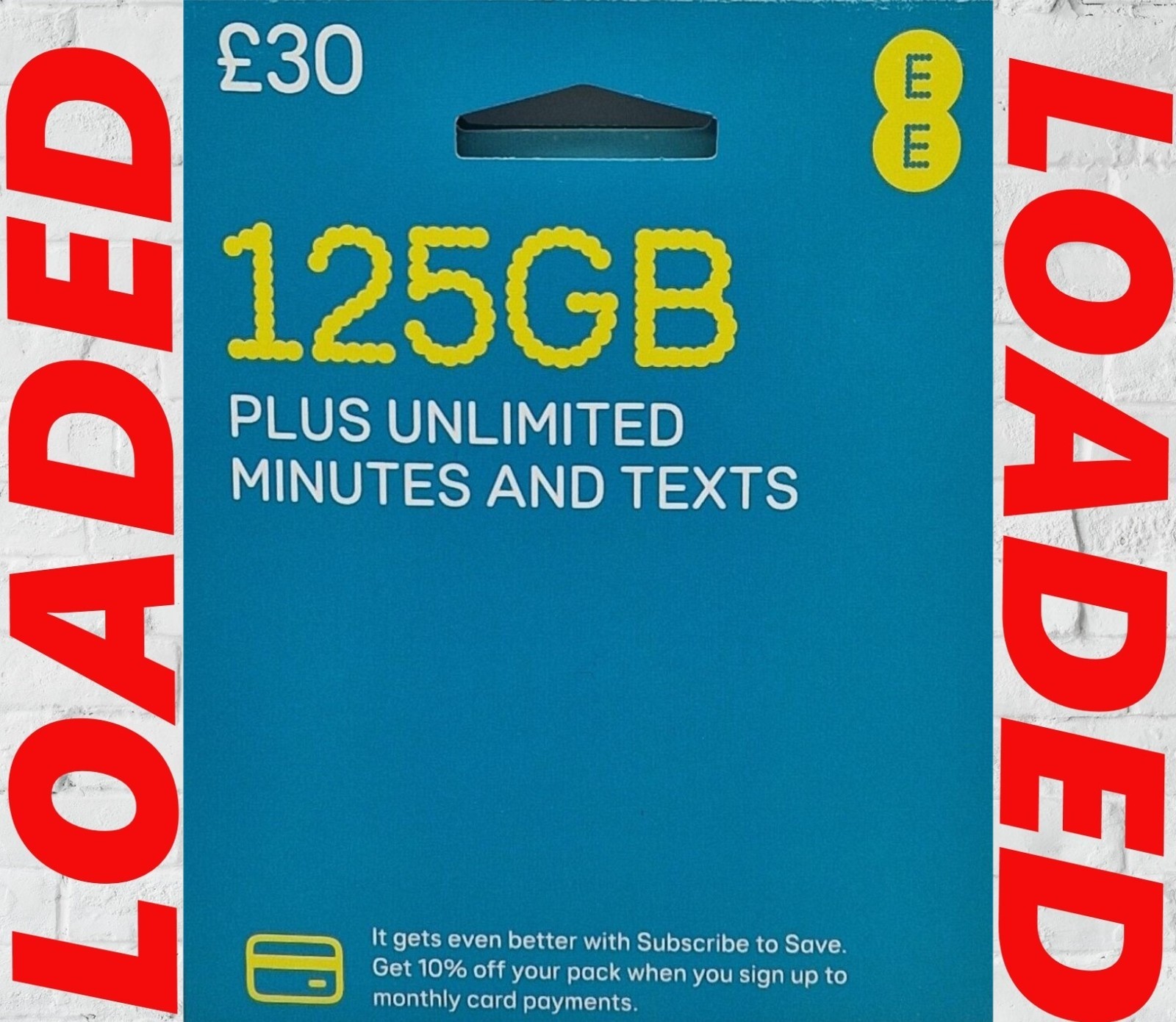 EE Data Sim card 2G -4G & 5G Preloaded With 125GB Data LOAD PACKAGE EE PROMO