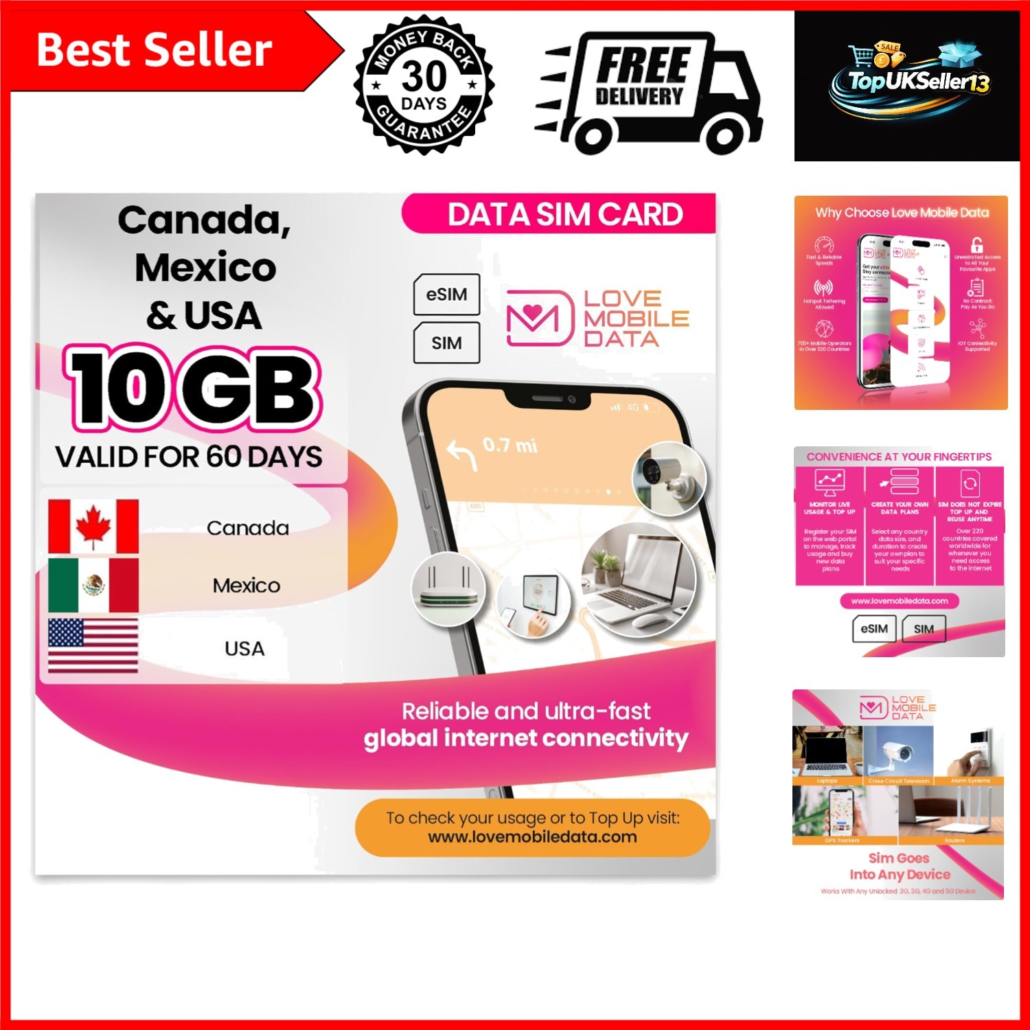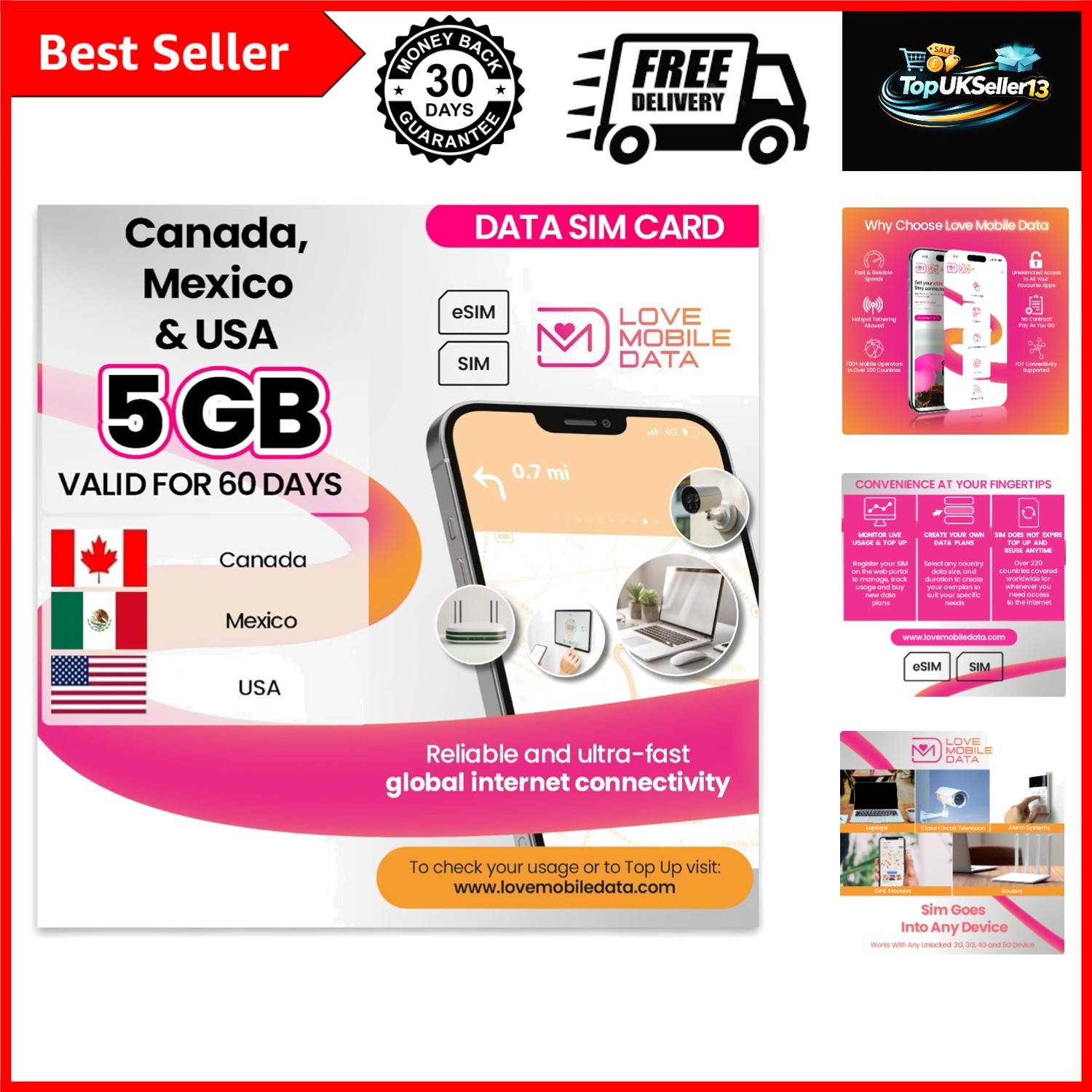 Love Mobile Data Only Sim Card - International Multi-Network 4G/5G Prepaid Pay As You Go Data Sim for Mobile Phones, WiFi Routers, & More, Mexico, Ca