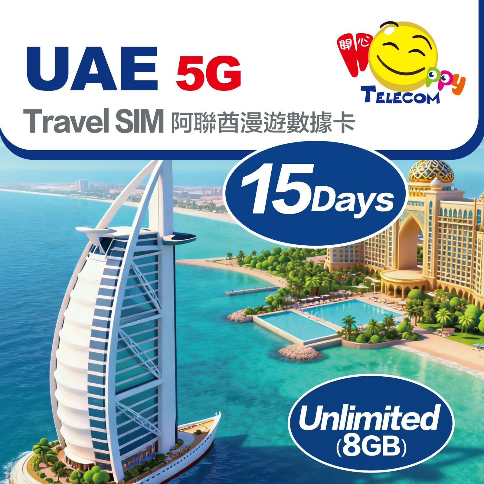 Happy 5G Dubai 15/30 Days Unlimited Data Travel Sim Card | No Daily Limit | 5...