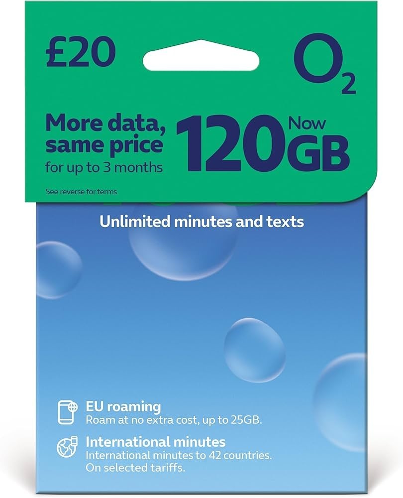 O2 Data Sim Card Preloaded with UNLIMITED 4G/5G Data. Includes 25GB to Roam for Free in 47 Countries. No Contracts, No Commitments, No Credit Checks, No Tie-ins, No Personal ID. (Valid for 1 Month).